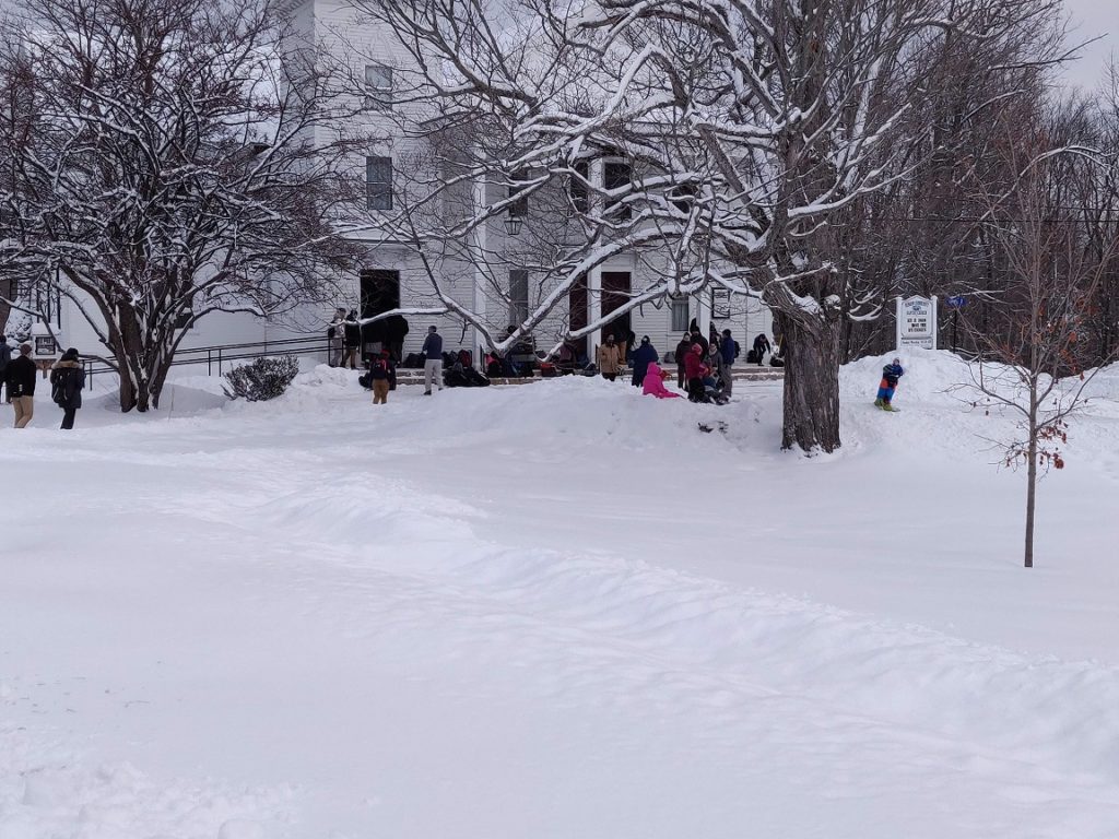 By 12 o’clock nobody has been outside, an unusual scene like the snow itself. The deeply embedded footprints on the previous snow have been erased. On the sky, the clouds are moving further and further apart, create an opening for the sun to shine through.