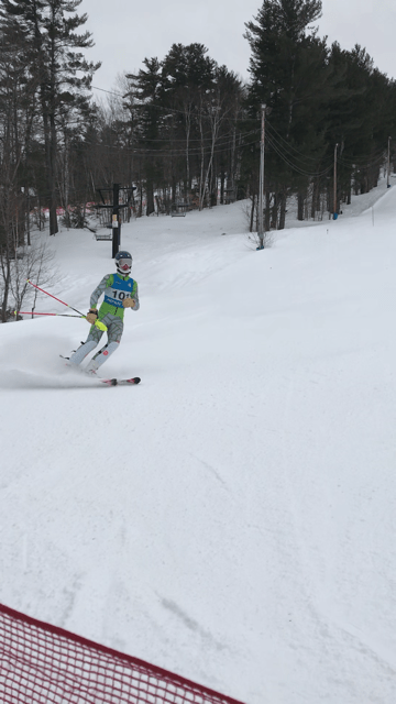I head up to the top of the course, I take my skis off, take my jacket and snowpants off after, grab my poles, and click into my skis. I am determined and ready. I ski my way down to the starting gate, I get into the gate and look down the course. It’s like I am looking into a huge beast that is staring me in the eyes. I legitimately feel sick to my stomach, but I toughen up and get ready. I aggressively slam my skis on the snow many times. The clock begins to beep 3, 2, 1, GO. I have been hit with a massive bolt of lightning, and it wipes my feelings away. I go as fast as I can while hoping not to fall. I am flying and feel on top of the world. It is undoubtedly the greatest feeling in the world. I finish the course and the crowd claps profusely. I feel alive.