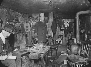 The poverty that Maggie and her family experience directly correlates to the poverty that many Irish immigrants had to live in during the early 20th century. While Maggie is looking around her small living area, “The broken furniture, grimy walls, and general disorder and dirt of her home of a sudden appeared before her” (Crane 26). This shows that the Johnson family has no money left over to buy new furniture or to clean the ’grimy walls, and general disorder and dirt’ that was all throughout the house. Another instance where Maggie notices how disgusting her home is is after she meets Pete. The narrator says, “Maggie contemplated the dark, dust stained walls, and the scant and crude furniture of her home. A clock, in a splintered and bettered oblong box or varnished wood, she suddenly regarded as an abomination” (Crane 28). Crane’s use of vivid adjectives allows the reader really see and experience how horrific her home is. An example of this comes when he describes the furniture as ‘scant and crude.’ Like Maggie and the rest of the Johnson family, Irish immigrants lived in similar situations. They lived in places with multiple families that were meant for only one. Some people even lived in cellars and attics. The lack of sewage and running water also made adequate sanitation almost impossible. These poor living conditions in turn led to diseases such as cholera, and tuberculosis, and typhus (Adaptation and Assimilation). In the novella, Maggie’s brother Tommie dies at a young age. The narrator says, “The babe, Tommie, died. He went away in a white, insignificant coffin, his small waxen hand clutching a flower that the girl, Maggie, had stolen from an Italian” (Crane 18). The tone and language suggests that a short life expectancy was not out of the ordinary. The ‘insignificant coffin’ shows that it was a normal thing for an infant to die. Tommie might have caught one of the many diseases or could have just passed away from malnutrition. These poor living situations also led to a poor social environment for the people as well.