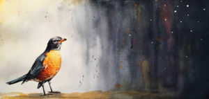 From the warmth and feathers perched in his chest